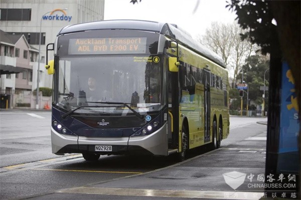 首台BYD ADL Enviro200EV XLB纯电动大巴驶入“风帆之都”新西兰