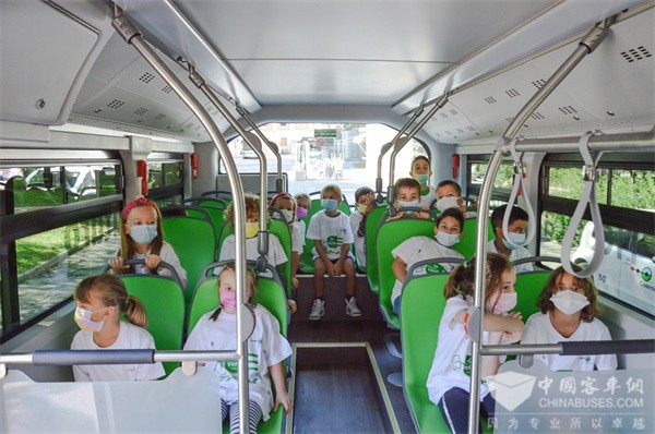 这款巴士载客量高达58人,车内氛围灯和内饰布局的颜色搭配打造出清新动感的风格,8.7米车身长度更是为意大利狭长的街道量身定制,便于穿梭大街小巷。