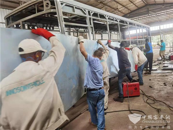金旅KD工程师程斌与尼日利亚CKD工厂工人一同奋战