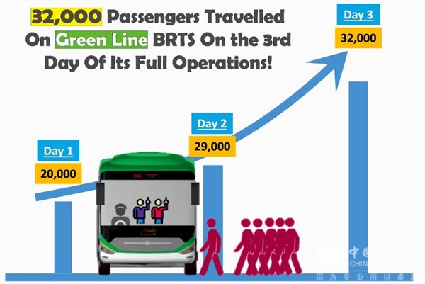 在项目试运营时,巴基斯坦总理伊姆兰-汗亲自试乘了中通BRT客车,在讲话中表示了高度认可。同时,自正式运营以来,每天攀升的载客人数,也赢得了当地主流媒体的关注和点赞。