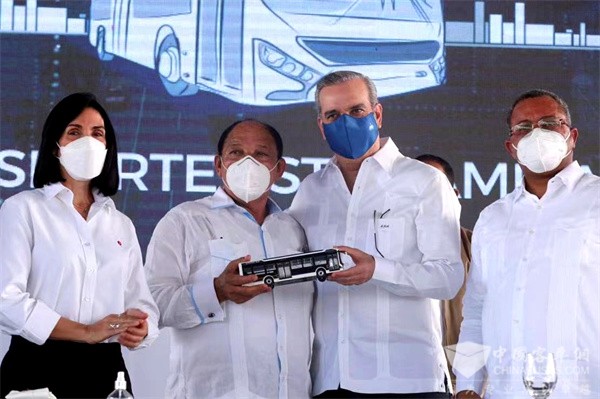 路易斯•阿比纳德尔总统以及多米尼加公共工程和通信部长、运营商分别致辞,对车辆的正式投运表示祝贺。同时,路易斯•阿比纳德尔总统还现场接受了中通客车模型礼物,为中通客车的品质和服务点赞。