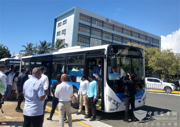 2021年2月13日,以“让出行更美好”为主题的公交客车运营启动仪式,在多米尼加首都圣多明各市英雄中心国家馆成功举办。仪式上,141台中通客车12米公交车正式交付当地政府,将为市民带来舒适便捷的现代化公共出行新体验。多米尼加总统路易斯•阿比纳德尔(Luis Abinader)出席仪式,并现场试乘体验了中通客车产品。