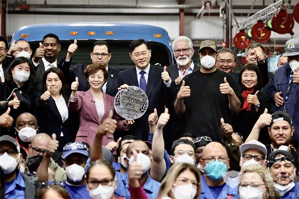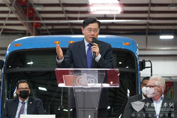 中国驻美大使秦刚到访比亚迪美国工厂 为比亚迪“充电”