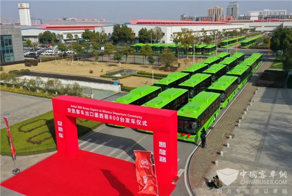 春和景明,击鼓催征。2022年3月8日,“安凯客车出口墨西哥800台发车仪式”在安凯客车厂区隆重举行。800辆10.5米安凯天然气公交车的载梦远航,不仅成为中国客车迄今出口墨西哥的最大订单,而且将为北美洲及全球的低碳发展传递“绿色能量”,同时也为中国客车出口带来了强劲的增长动能。