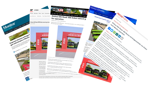 据新华丝路统计,2022年3月9日-18日,《800 Ankai natural gas buses exported to Mexico for operation》一文在北美洲、欧洲、亚洲、大洋洲、拉美及其他地区以英语、法语、德语、西班牙语、葡萄牙语、日语、韩语、泰语、马来西亚语、中文、波兰语、匈牙利语、希腊语、捷克语同时发布,并在第一时间被当地主流渠道、门户网站及重点信息服务机构广泛转载落地,总量达1022家次,覆盖潜在受众人数1,245,094,218人。