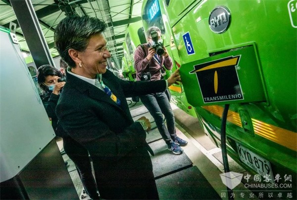 波哥大市长Claudia López为比亚迪纯电动大巴充电