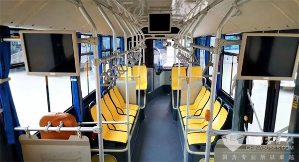 该批车辆为一级踏步低入口,配备可翻转无障碍导乘翻板等,方便乘客上下车。