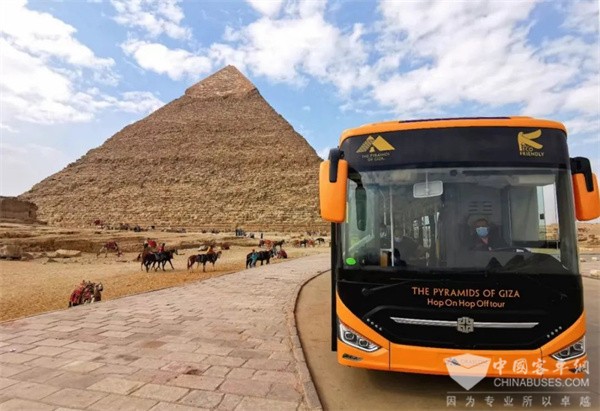 2020年,金字塔景区引入首台中通新N系纯电动客车,这是埃及首次在景区内引进纯电动车辆。经过一年多的试运营,中通新N系成功赢得景区的认可。2021年年底,在良好的运营品质的加持下,第二批新N系如约而至。