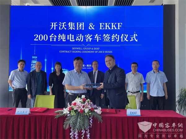 2022年6月14日,开沃集团&西亚EKKF集团200台纯电动客车签约仪式在开沃集团南京总部举行。EKKF集团执行总经理M.Y先生、EKKF集团中国区代表、开沃集团董事长/创维汽车创始人黄宏生、联合创始人/副总裁诸萍、党委书记/副总裁江民、副总裁/大客事业部总经理李江、副总裁/海外业务中心总经理黎明等领导一同参加。