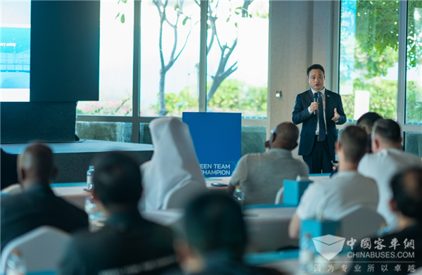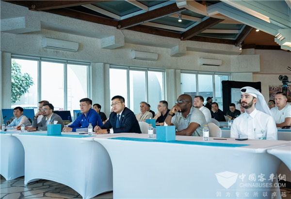 宇通中东区大区经理沈辉在发言中说道:宇通作为全球最大的纯电动客车制造商,除了全品类的产品覆盖,更有能力为差异化的城市交通提供定制化的公共出行解决方案。本次服务卡塔尔赛事的电动车队,是由宇通专门为卡塔尔设计的“干线公交+支线微循环+长续航客旅团”的纯电动综合解决方案。在卡塔尔赛事期间专门组建了共计126人的庞大服务团队,进行每日点检、站点巡视和车辆跟踪。并储备了4162种配件,并针对3000名司机分批次进行培训,保证了卡塔尔顶级足球赛事车辆的安全、高效运营。