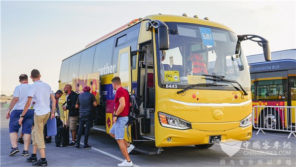 加纳队球员乘坐的车来自苏州金龙,这辆海格KLQ6119GS双层巴士和载誉而归的球员们一起,见证了他们的荣耀时刻,承载了队员们的美好回忆。