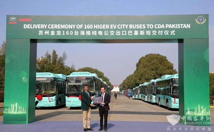 随着苏州金龙总经理黄书平宣布发车,160辆苏州金龙海格纯电公交客车正式启程,发往巴基斯坦。