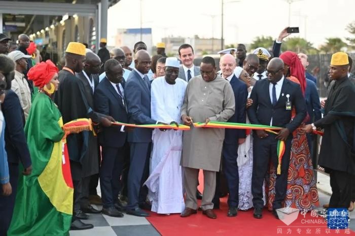 当天,塞内加尔总统、中国驻塞内加尔大使以及中塞各界人士为新落成的快速公交系统运营控制和维护中心大楼揭牌,并参加了项目通车典礼。中国中车总裁助理宁文泽、中车电动总经理刘凌参加仪式。