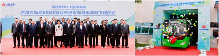 2023年5月,中通客车一次性出口吉尔吉斯斯坦1000辆清洁能源客车大单,总统扎帕罗夫亲自来提车的新闻火遍全网。