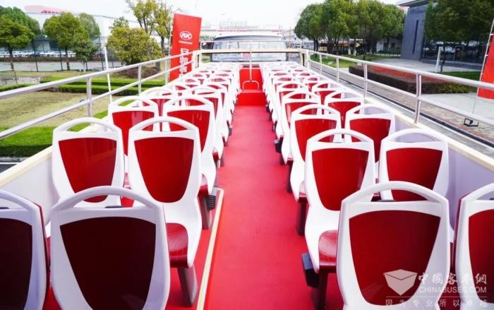 此次出口法国的纯电动双层客车,是安凯专为观光旅游城市量身打造的代表车型。车辆长度为12米,分为上下两层,上层采用半敞篷设计,不仅时尚拉风,而且游客还拥有360度的观景视野,可以享受沉浸式观光体验;下层采用低地板和轮椅区的设计,便捷且富有人性化,满足了不同乘客的出行需求。