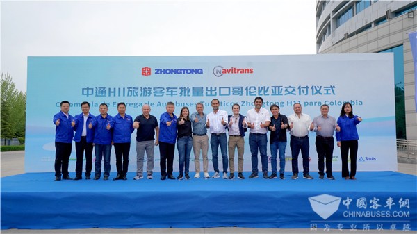 此次中通客车批量H11旅游客车正式交付哥伦比亚,无疑将代表中国制造,为哥伦比亚公共交通发展提供新动力。