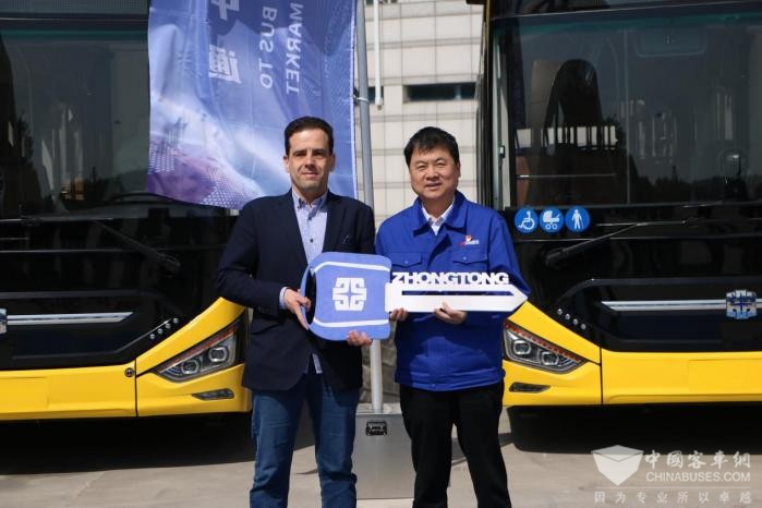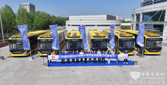 2024年4月25日,35辆中通18米BRT纯电动客车正式交付葡萄牙用户,为中国客车出海征途再添新彩。
