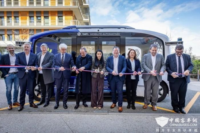 启动仪式上,德龙省省长Thierry Devimeux、瓦朗斯-罗芒城市圈副主席Laurent Monnet、阿利克桑市长Jean-Claude Duclaux、法国基础设施与交通出行总局“自动化交通”项目经理Florence Gallay,以及文远知行CFO兼国际业务负责人李璇、雷诺集团自动驾驶项目负责人Patrick Vergelas、beti首席执行官Benjamin Beaudet、Bertolami集团董事总经理Fabien Bertolami、Bertolami集团前首席执行官Christian Bertolami、Macif会员需求响应与创新总监Yann Arnaud等政企代表共同为项目剪彩,展现了法国政企各界对该次项目的高度重视,以及在绿色低碳自动驾驶交通解决方案上的深度协同。