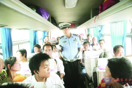 19日下午,在安阳市人民大道与东外环交叉口,安阳市公安局交警支队一大队的民警,正在对过往的长途客车进行安全检查。据了解,目前大中专院校开学在即,为保障返校学生的人身安全,交警部门在全市的主要出市口设置检查岗,集中清查客车超员、证件不全、车辆存在安全隐患等交通违法行为。
