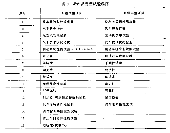 把样车分成A、B两组,每组的样车数不得低于2辆。试验程序按表3进行。