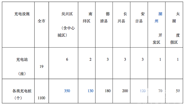 湖州市充电基础设施建设任务分解表