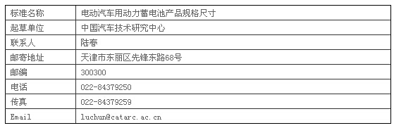 由电动车辆分标委组织修订的汽车推荐性国家标准《电动汽车用动力蓄电池产品规格尺寸》已完成征求意见稿。现提交公示,广泛征求意见。请各相关单位及专家提出宝贵意见,并将意见和建议回复至分标委秘书处(联系人:徐枭,022-84379270,xuxiao@catarc.ac.cn)及标准起草单位。