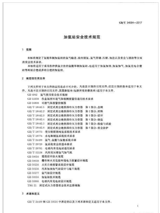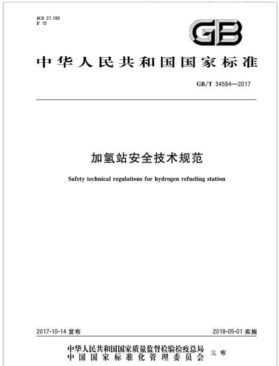 国家发布加氢站安全技术规范(GB/T 34584-2017)