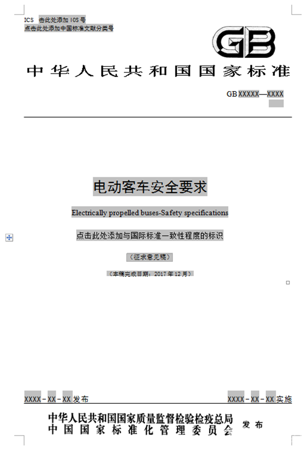 其中, GB《电动客车安全要求》征求意见稿如下: