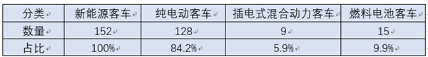 2018年8月2日,工业和信息化部发布了《新能源汽车推广应用推荐车型目录》(2018年第8批)。本批推荐目录共包括152款新能源客车,其中纯电动客车128款,占新能源客车总量的84.2%,插电式混合动力客车9款,占比5.9%,燃料电池客车15款,占比9.9%。