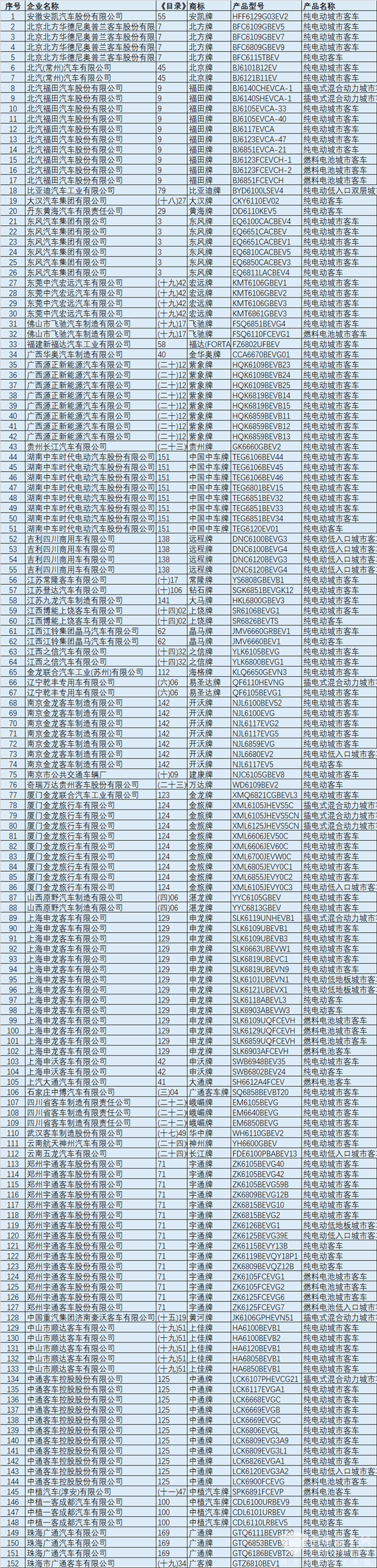 《新能源汽车推广应用推荐车型目录》(2018年第8批)客车部分目录