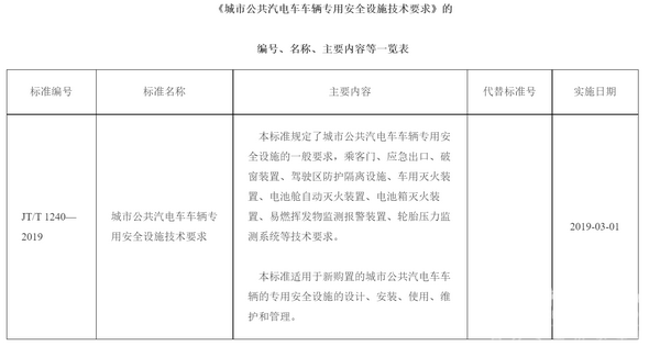 交通运输行业标准《城市公共汽电车车辆专用安全设施技术要求》业经审查通过,现予发布。该标准为推荐性标准,由人民交通出版社出版,并在中华人民共和国交通运输部网站上公告。