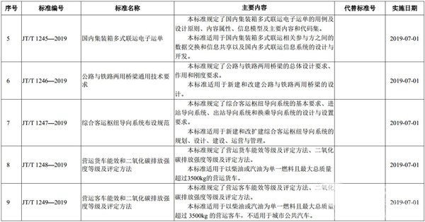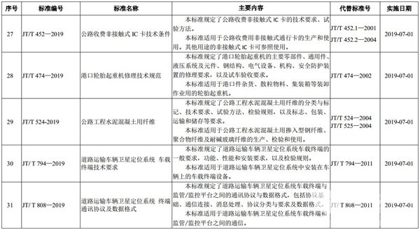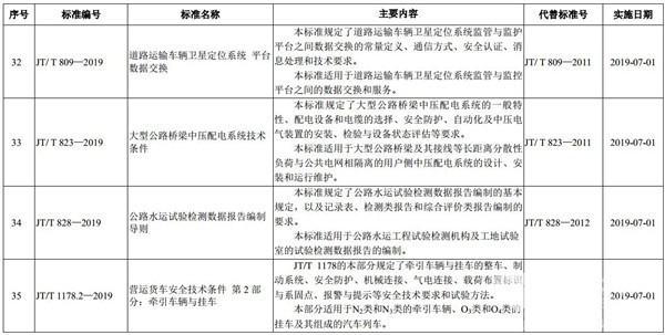2019年03月18日,交通运输部发布了《城市公共汽电车驾驶区防护隔离设施技术要求》等35项交通运输行业标准(2019年第3批),具体内容如下: