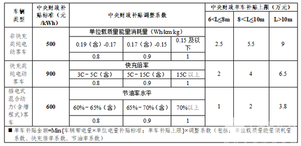 其中,新能源客车补贴单辆最高为9万元,其补贴系数调整为0.8、0.9和1三个等级。
