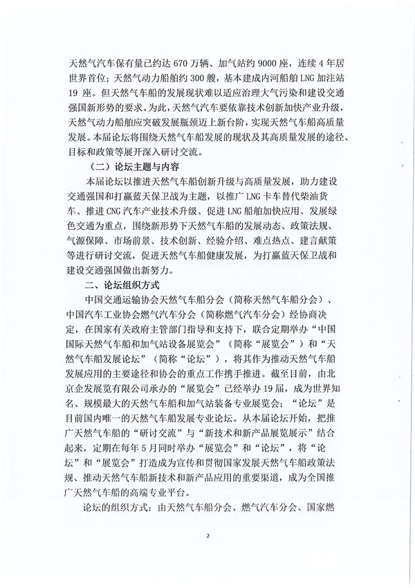 通知:5月,第二届中国天然气车船发展论坛将于北京举办