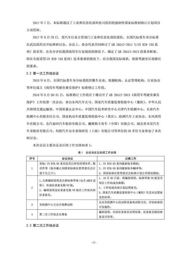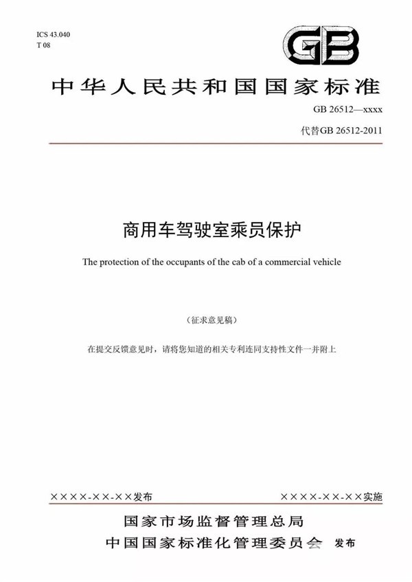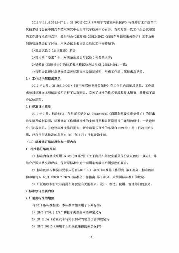 2019年7月8日,工信部公开征求对强制性国家标准《商用车驾驶室乘员保护》(征求意见稿)的意见。
