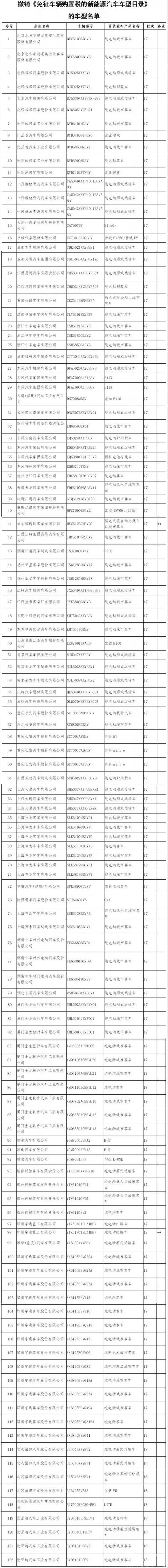 3.撤销《免征车辆购置税的新能源汽车车型目录》的车型名单