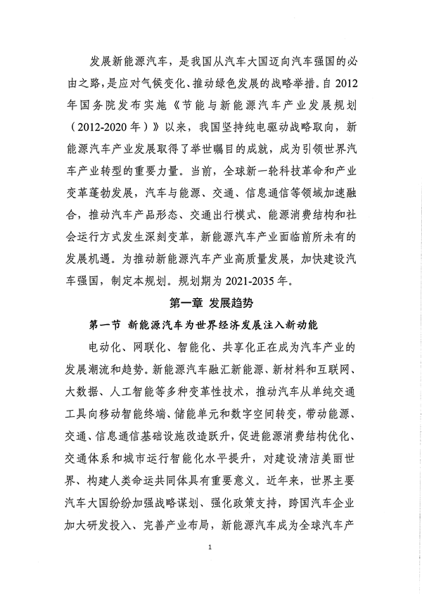 以下为《新能源汽车产业发展规划(2021-2035年)》(征求意见稿)原文: