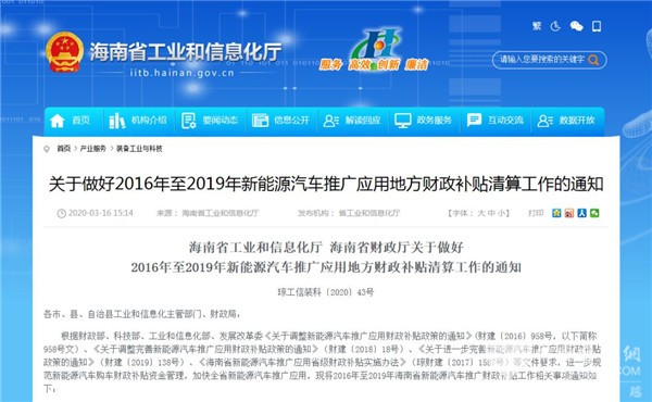 海南省工信厅相关负责人表示,各市县是海南省新能源汽车地方购车补贴清算工作的责任主体,购车消费者补贴申报相关问题由各市县负责解释,建议消费者先咨询汽车经营商。