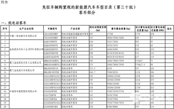 110款客车入榜!工信部发布第30批免征车辆购置税新能源车型目录