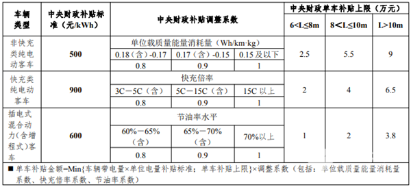 新能源客车补贴标准和技术要求