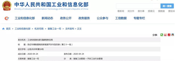 根据《财政部 国家税务总局 工业和信息化部 科技部关于免征新能源汽车车辆购置税的公告》(2017年第172号)、《中华人民共和国工业和信息化部 财政部 国家税务总局公告》(2018年第17号)的要求,工业和信息化部会同国家税务总局等部门对企业提交的申请进入《免征车辆购置税的新能源汽车车型目录》的材料进行了审查。现将《免征车辆购置税的新能源汽车车型目录》(第三十一批)、《汽车生产企业名称变更名单》予以公告。