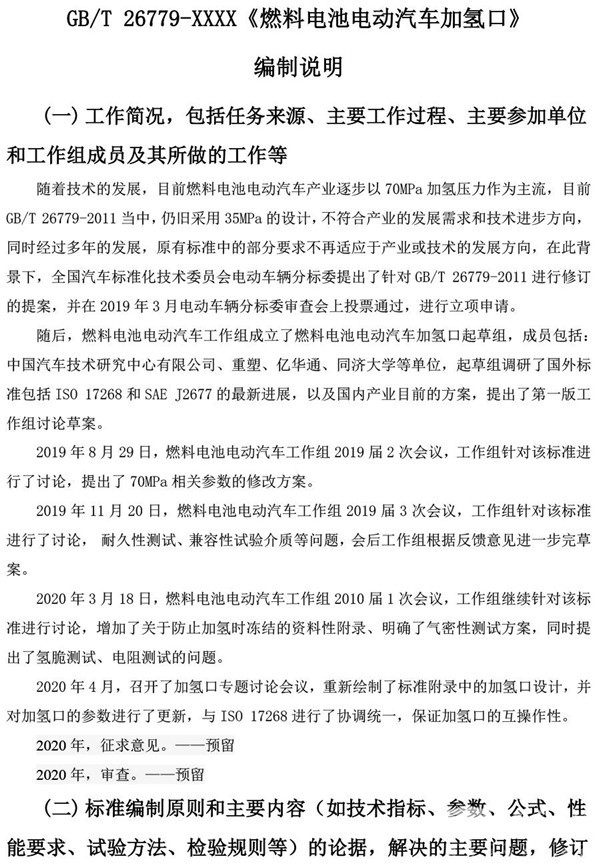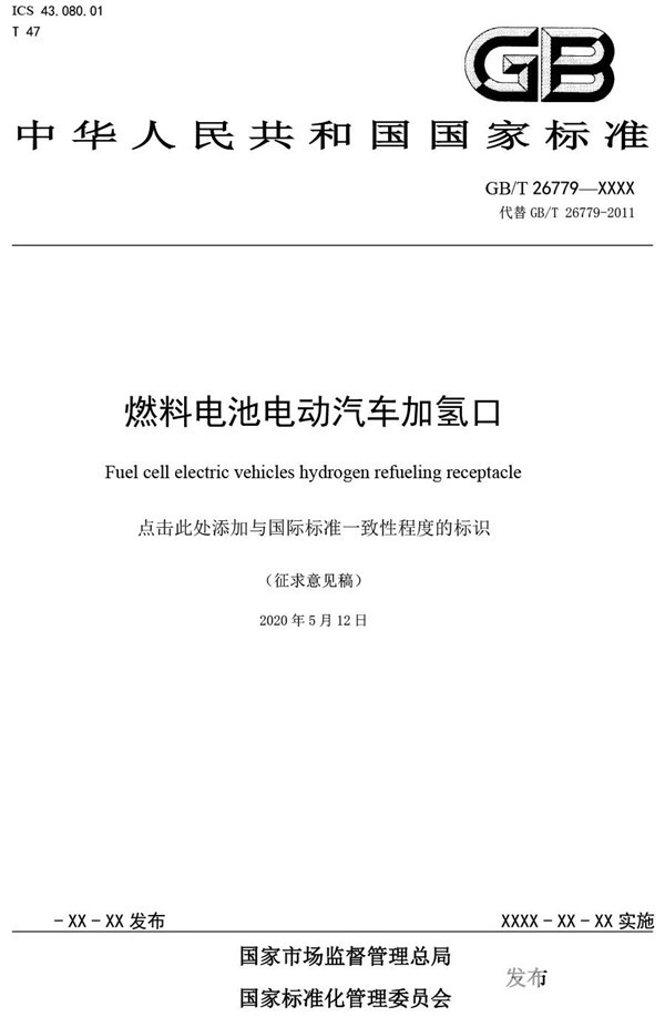 2020年5月13日,全国汽车标准化技术委员会发布了《汽车推荐性国家标准<燃料电池电动汽车加氢口>征求意见的函》。