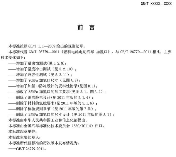 《燃料电池电动汽车加氢口》征求意见稿发布