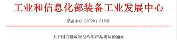 2020年5月28日,工信部装备工业发展中心发布关于国五排放轻型汽车产品确认的通知,按照《生态环境部 工业和信息化部 商务部 海关总署关于调整轻型汽车国六排放标准实施有关要求的公告》和GB 18352.6-2016《轻型汽车污染物排放限值及测量方法(中国第六阶段)》要求,国五排放轻型汽车产品应于2020年7月1日停止生产。