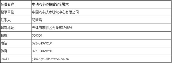 1、《电动汽车碰撞后安全要求》征求意见稿