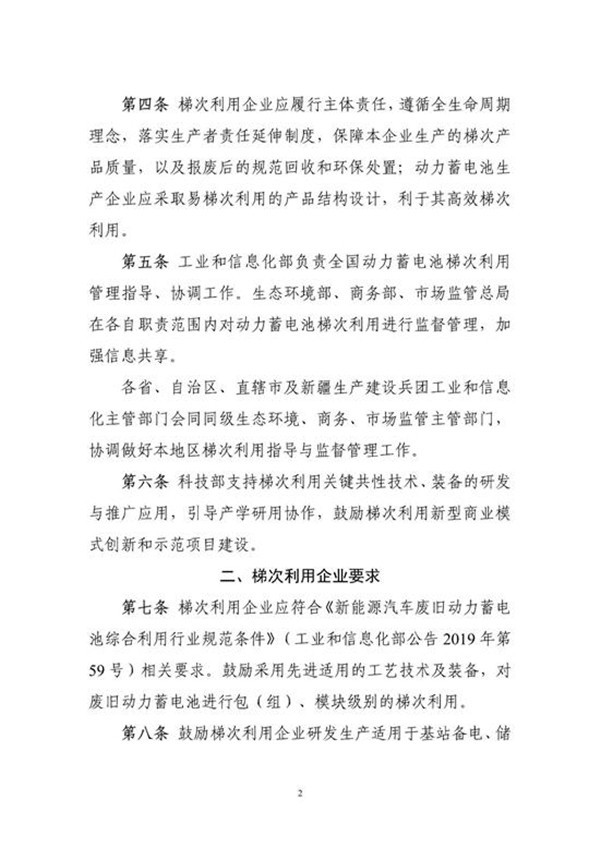 2020年10月10日,工业和信息化部节能与综合利用司发布了《新能源汽车动力蓄电池梯次利用管理办法》,并将征求意见稿向社会公开征求意见。