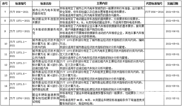 附件:发布的15项交通运输行业标准的编号、名称、主要内容等一览表