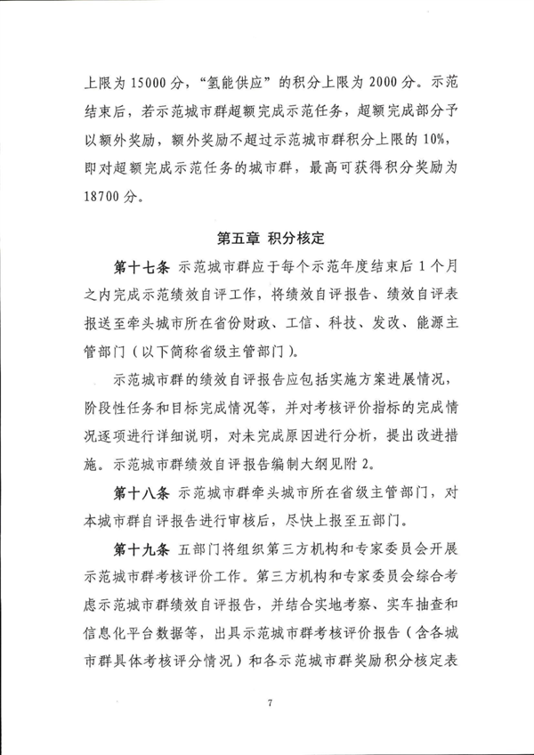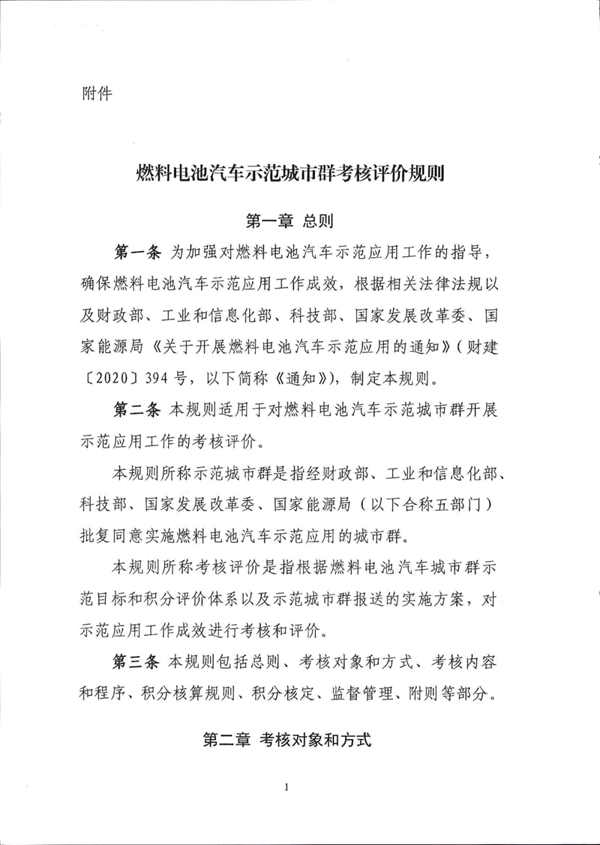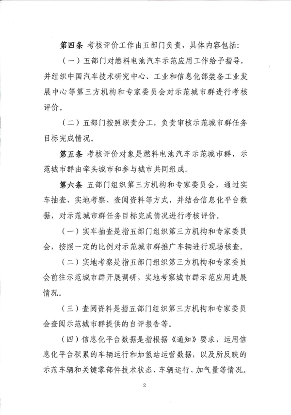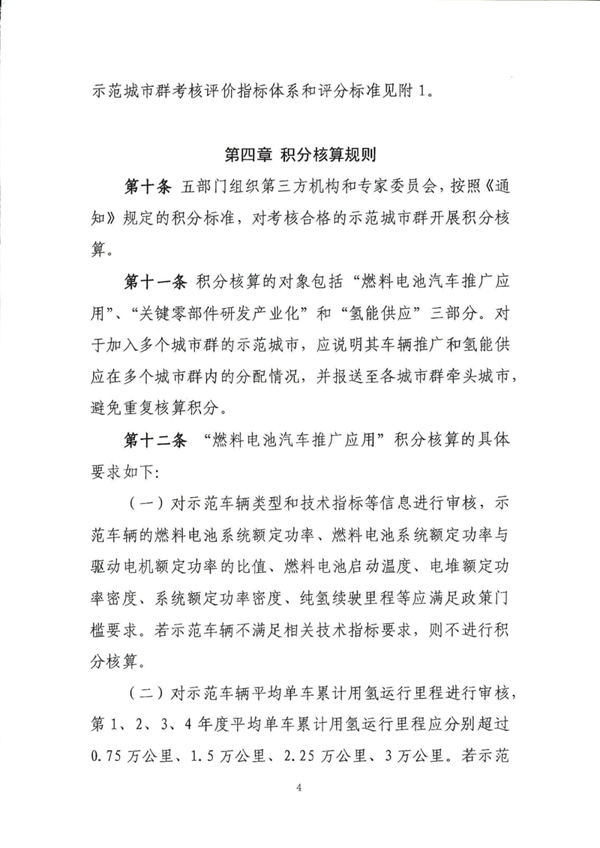 并且在通知中进一步明确了燃料电池汽车示范城市群考核评价规则。