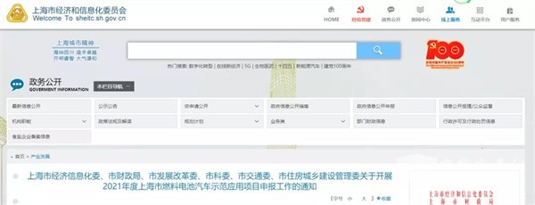 上海市六部委:2021年度上海市燃料电池汽车示范应用项目申报开启!