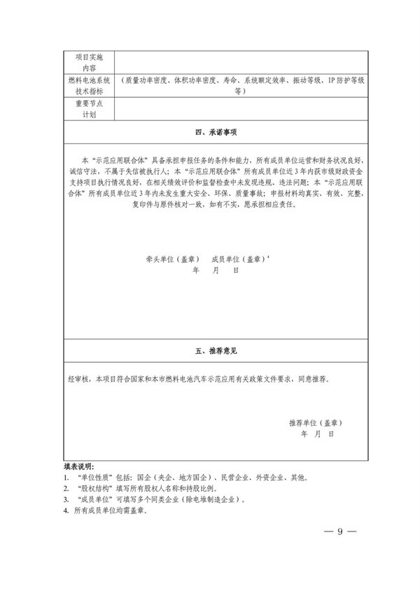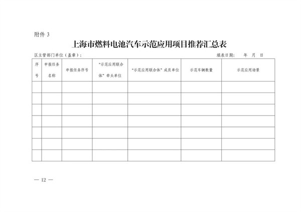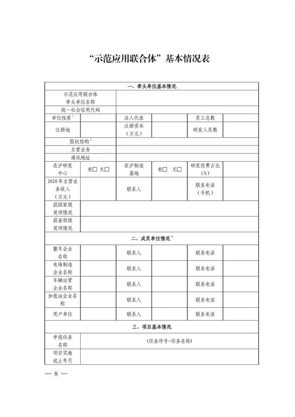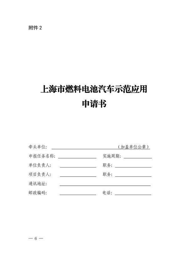 “示范应用联合体”需按要求提交《上海市燃料电池汽车示范应用申请书》(见附件2)。